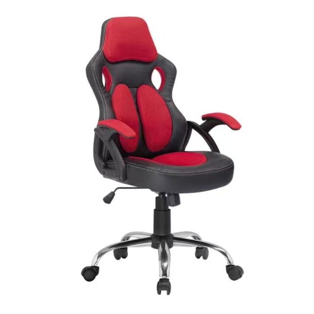 Moderne ergonomische gaming stoel met een ademende rode mesh rugleuning (eye design), zwart en rood PU leer bekleding, en gepolsterde nylon armleuningen voor comfort.Deze ergonomische gamingstoel is gebouwd op een duurzame 320 mm gechromeerde nylonbasis met 100 mm geverfde gaslift (hoogte verstelbaar van 110 tot 118 cm) en een multi-tiltmechanismeDeze ergonomische gaming stoel combineert sportieve esthetiek met ergonomische ondersteuning, ideaal voor lange spelsessies, streaming of kantoorgebruik.Deze ergonomische speelstoel wordt in een karton van 75×32×58 cm (G.W. 16,3 kg).